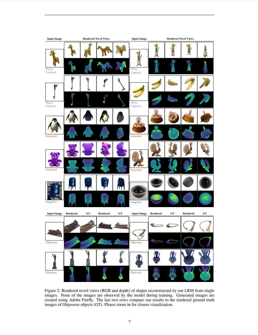 - LRM은 단일 GPU에서 5초 안에 3D 형상 생성 가능