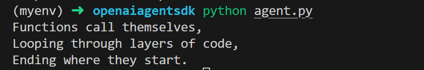 result = Runner.run_sync(agent, "Write a haiku about recursion in programming.")