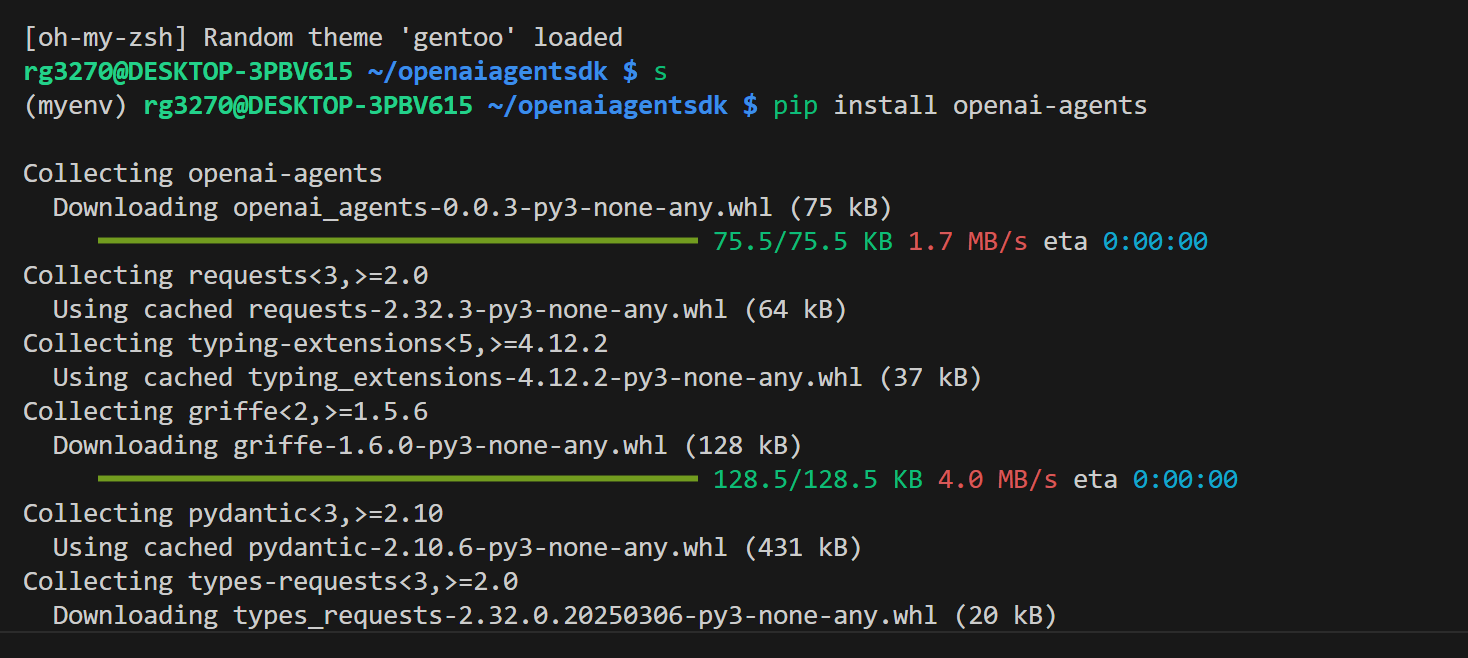 1) OpenAI Agents SDK 설치방법: 아래 명령어로 패키지를 설치하고, API Key를 설정하면 설치가 완료됩니다.